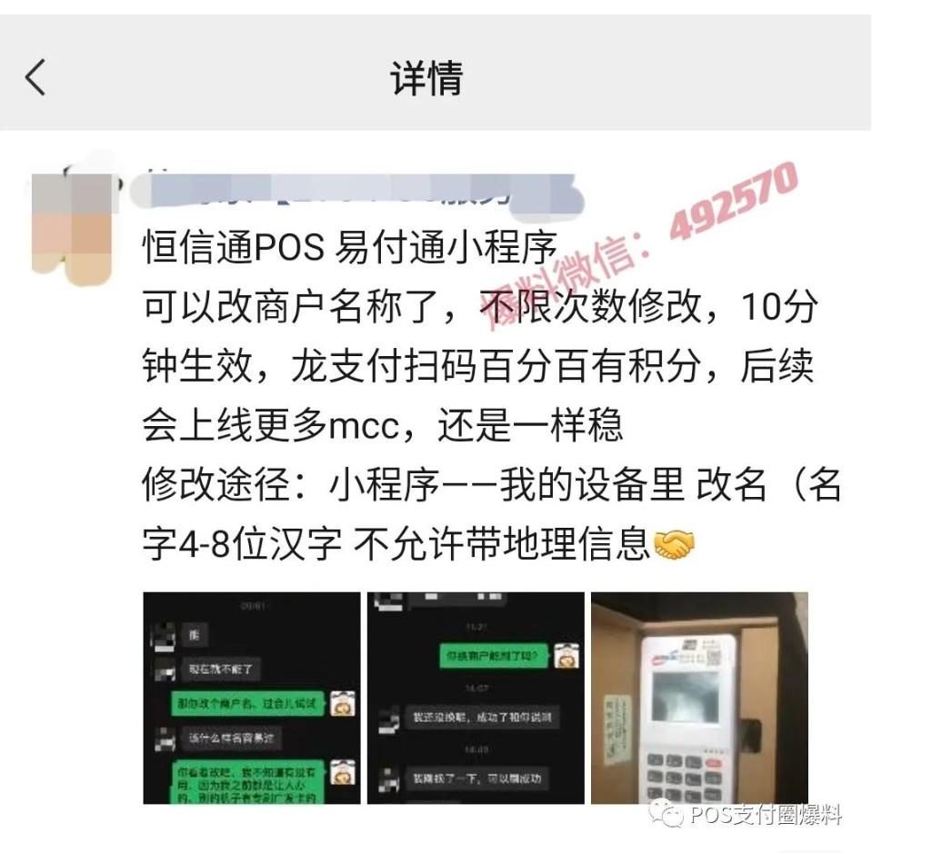 這個“騷操作”有人開了頭,就會有人跟進模仿學習,依葫蘆畫瓢,逐漸改商戶的“先進技術”被越來越多的第三方支付公司使用,只不過每家機構的POS變更商戶次數有不同的限制。