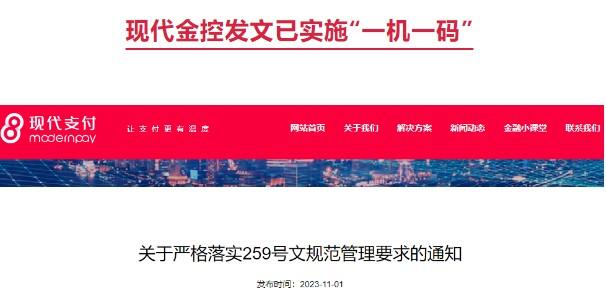 近日,現(xiàn)代金控在其官網(wǎng)發(fā)文《關(guān)于嚴(yán)格落實(shí)259號(hào)文規(guī)范管理要求的通知》。