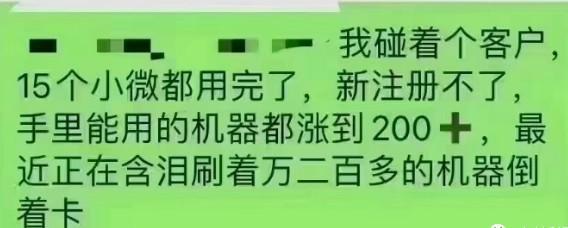 有的客戶,15個(gè)小微都用完,新機(jī)器注冊不了,手里能用的機(jī)器都漲到萬200以上的費(fèi)率了,最近只能含淚刷萬200POS機(jī)。