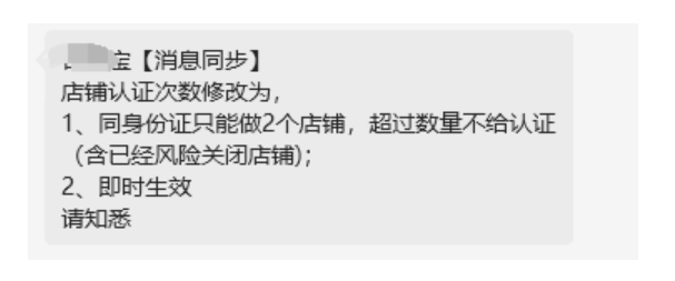據代理商透露,XX寶平臺已經同步實施,同身份只能做2個店鋪,超過數量不給認證(含已經風險關閉店鋪)