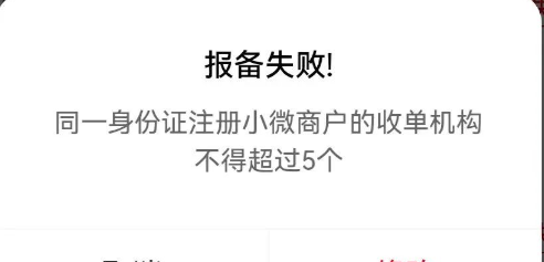 同一身份證注冊小微商戶的收單機構進件不得超過5個