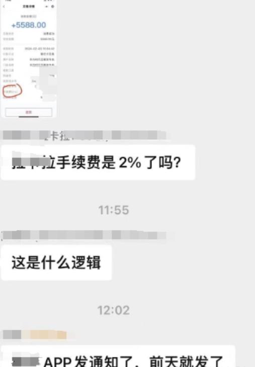 拉卡拉費率暴力漲價2%的手續費,刷一萬扣200