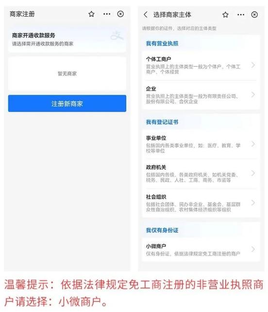 溫馨提示:依據法律規定免工商注冊的非營業執照商戶請選擇:小微商戶。