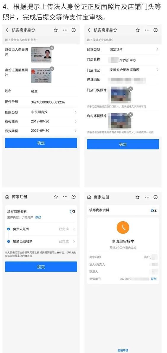提交資料均由支付寶人工審核,審核時效為3個工作日,審核結果請關注支付寶APP或手機短信通知。