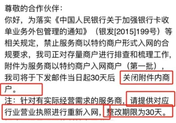 我司正對存量商戶進行排查和梳理工作,附件為服務商以特約商戶入網商戶(第一批),我司將于下發郵件當日起30天后,關閉附件內商戶。