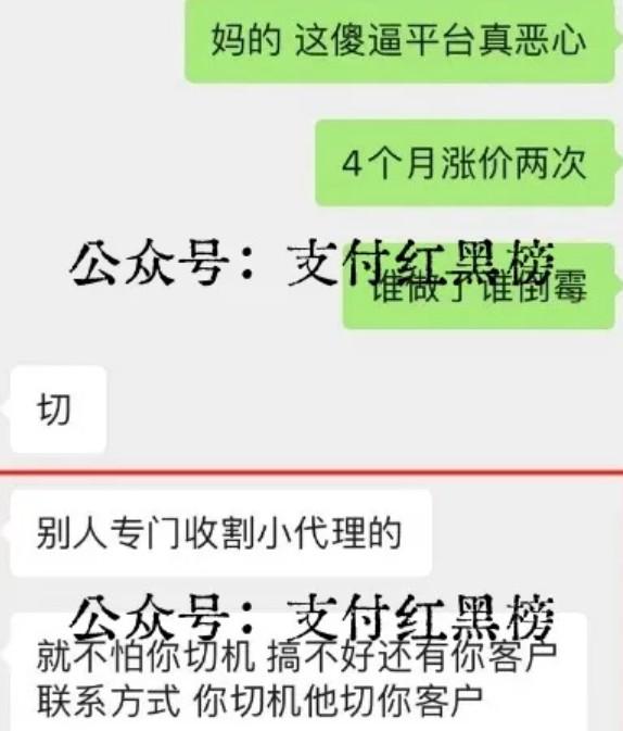 開始商戶費率是0.6,然后沒多久漲價了萬6,現在剛好4個月又漲價了萬3;這完全是把小代理商當韭菜,想怎么割就怎么割。