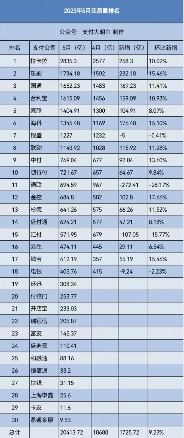 很多代理商都比較關心每個月的交易量排名,這個也比較能反映支付行業每個月的業務狀態,近日4月份交易量排名公布,相對于3月份,每個支付公司都下降了,超過1000億的僅有4家。