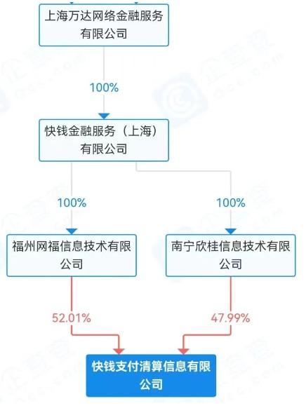 據了解,快錢金融是持牌支付機構快錢支付的間接控股股東。企查查顯示,快錢支付大股東為福州網福信息技術有限公司,持股52.01%;南寧欣桂信息技術有限公司持股47.99%。2家公司均為快錢金融全資子公司,快錢金融則為上海萬達網絡金融服務全資子公司,上海萬達網絡金融大股東為大連萬達集團,持股比例91.95%。