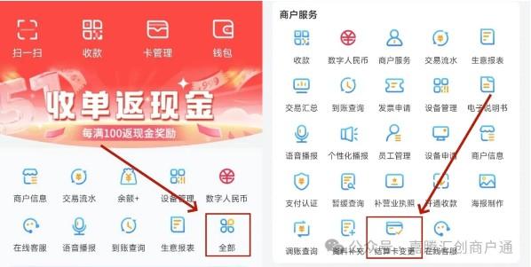 ①首頁點擊【全部】-【結算卡變更】;