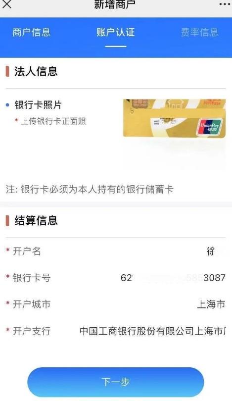 第二步:填寫(xiě)商戶(hù)結(jié)算銀行賬戶(hù)信息
