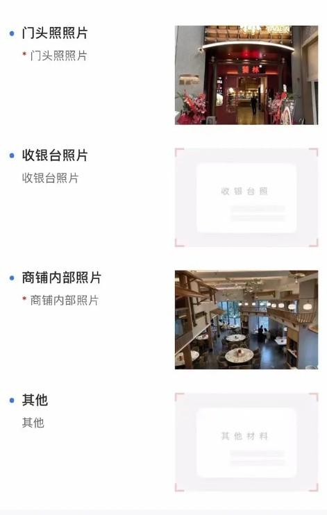 1.7、店鋪照片:使用提前準(zhǔn)備好的圖片(高德地圖搜索,見(jiàn)文章開(kāi)頭);小微類(lèi)型需要傳門(mén)頭照片、環(huán)境照片兩張圖,收銀臺(tái)空著;企業(yè)類(lèi)型需要門(mén)頭、環(huán)境、收銀臺(tái)照片,三張圖;(帶紅色☆的才需要填寫(xiě))