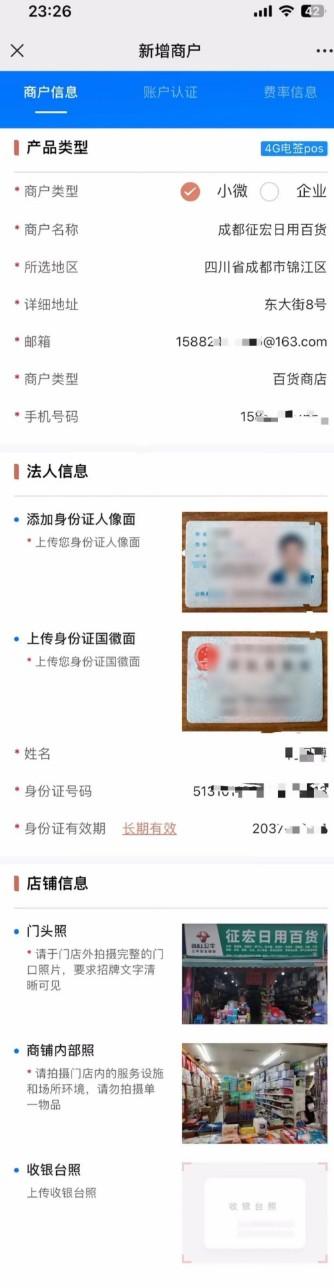 第一步:選擇商戶類型,填寫商戶店鋪信息,上傳商戶個人信息
