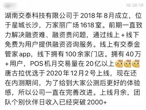 湖南交泰成立于2018年,當年可謂是如日中天,一邊是高速發展的支付業務,一邊是新業務“唐古拉優選”。