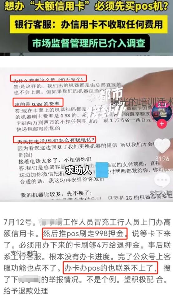 近期,河南都市頻道報道了多個客戶被騙的案例,假冒銀行卡員,給客戶辦理大額信用卡,誘騙客戶辦POS機,收998押金后消失。