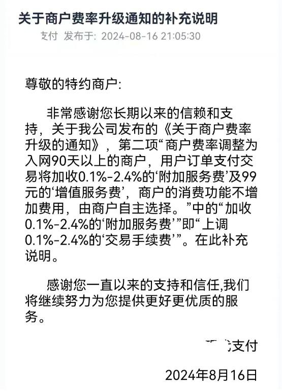 近日,現代金控發布補充上次的費率升級的公告。補充說明這次費率升級就是在基礎費率,如0.6%增加2.4%,相當于費率3%,另收取99元增值服務費。