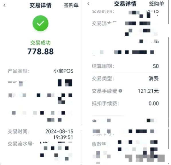 刷卡778.88元,手續費扣除121.21。費率高達萬285,另加99的服務費!