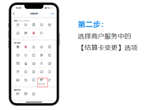 選擇商戶服務(wù)中的【結(jié)算卡變更】選項(xiàng)