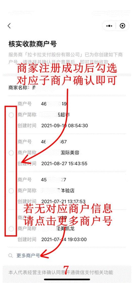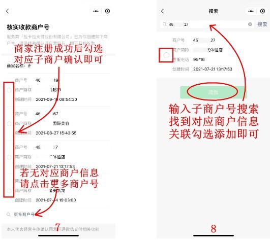 在微信小程序在核實收款商戶號頁面,點擊更多商戶號進行子商戶號的關聯