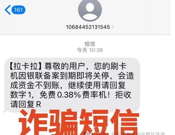 使用過刷卡機的朋友經常會接到各種冒充支付公司的“客服”,或者手機也會收到某某支付公司的短信。內容大都是以“威脅”的口吻,謊稱:“銀聯備案到期即將關停,會造成資金不到賬,繼續使用使用請回復數字1,免費0.38%費率機!拒收請回復R”,這都是詐騙短信,請大家不要相信和回復,以免上當受騙!