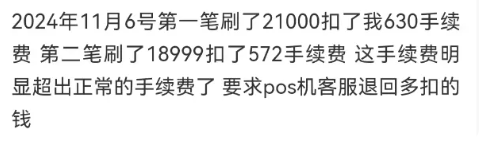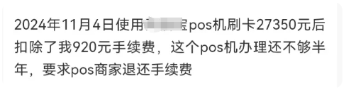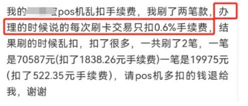 用戶在使用機器的時候,要注意刷小額的測試一下費率,費率不高的再刷大額。一次性刷大幾萬的,手續費可能就扣你一兩千。