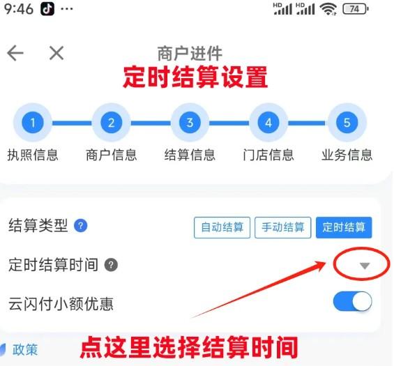 選一個結算時間,選好之后,交易金額會自動到收款卡里。