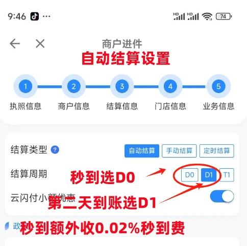 交易資金自動結算到商戶入網結算銀行卡。具體有兩種結算方式,一種是D0,也就是閃電到賬;另一種是D1,也就是第二天到賬。具體設置如下: