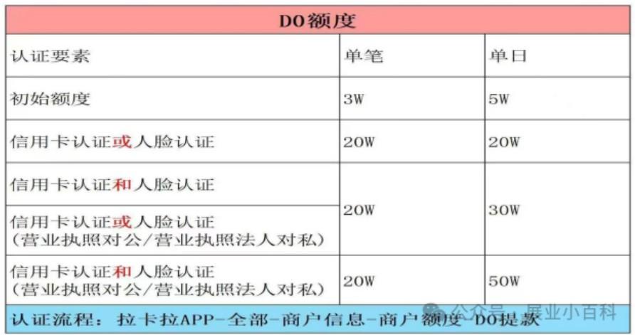 ?拉卡拉交易額度,限額詳情 拉卡拉 9個月前 ( 01-23 ) 311 拉卡拉限額詳情交易額度D0秒到出款額度“初始額度”是指商戶開通D0且未操作提額認證。提額認證成功會后,額度按這個新額度表規則執行。認證流程:拉卡拉APP-全部-商戶信息-商戶額度-D0提款 The End 標簽:博主很懶,并沒有設置標簽