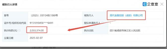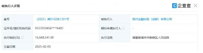 根據(jù)企查查顯示,近日現(xiàn)代金融控股(成都)有限公司(簡稱“現(xiàn)代支付”),再被法院列為失信執(zhí)行人,執(zhí)行標(biāo)的203余萬元。