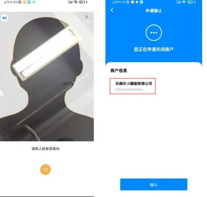①按頁面提示要求進行人臉身份識別,進行商戶號的二次確認。