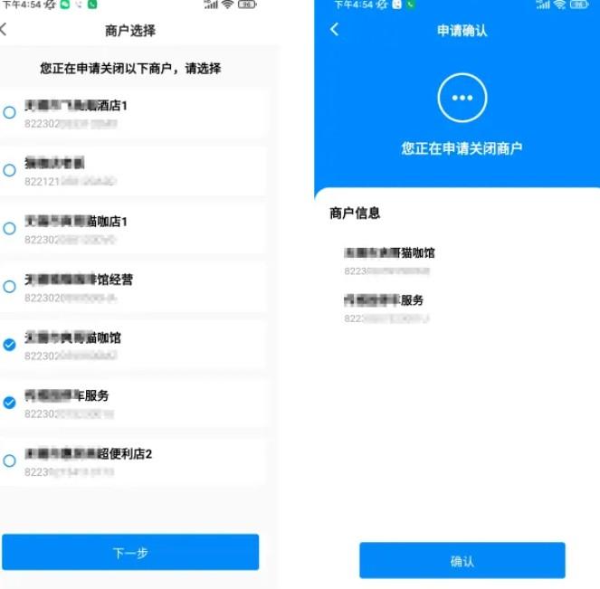 ②如需關閉多個商戶,會先展示商戶列表頁面,您可自行選擇需要關閉的商戶號。