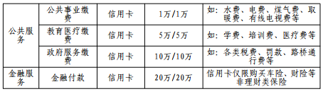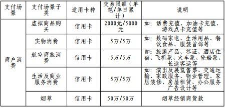 消費(fèi)業(yè)務(wù)場景范圍及單卡單筆/單卡日累計(jì)限額要求如下: