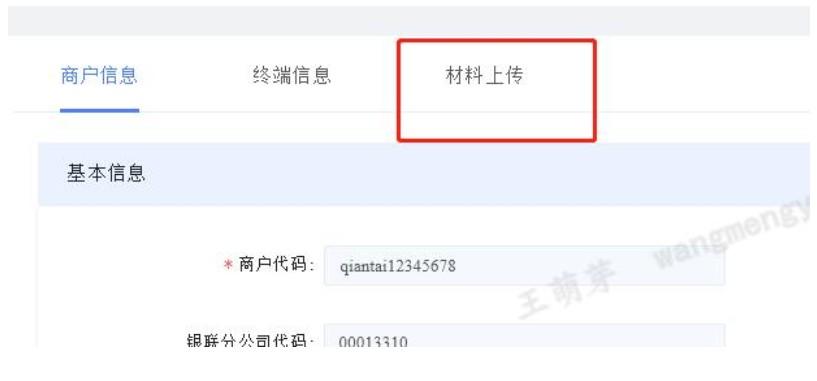 點(diǎn)擊“暫存”后,回到頁面最上面“材料上傳”,系統(tǒng)會(huì)根據(jù)產(chǎn)品和價(jià)格的情況直接反顯出該商戶可能需要錄入的材料